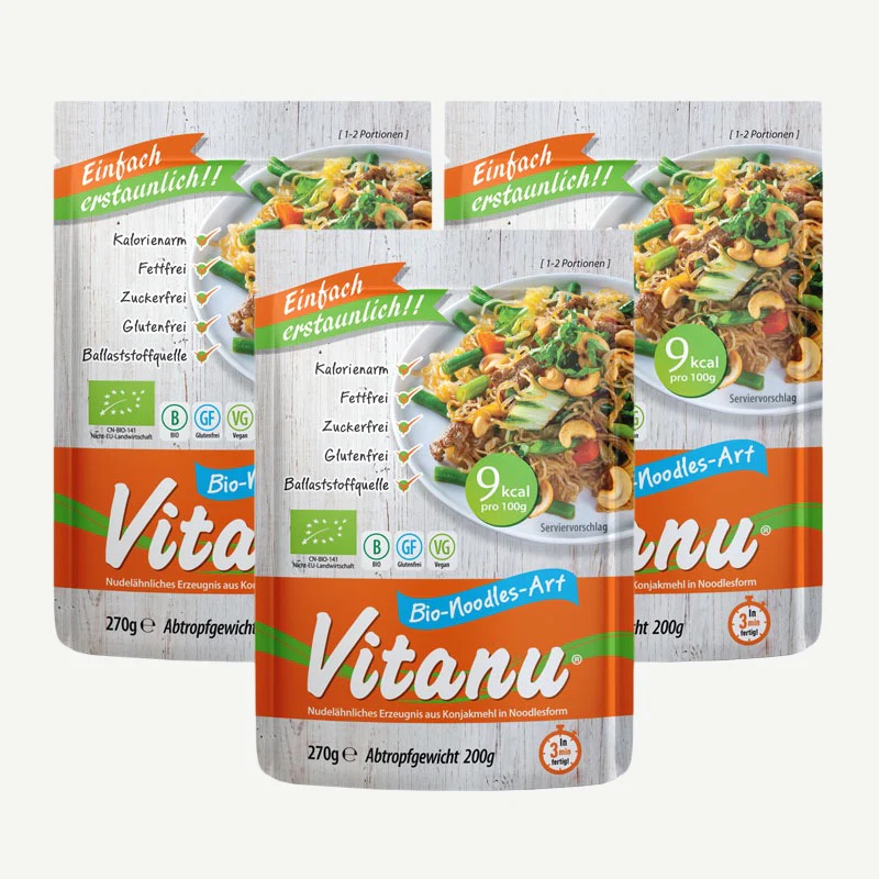 Vitanu Noodles & Reis, Bio-Shirataki Nudelersatz: Kalorienarme Alternative zu Pasta- ohne Kohlenhydrate, Fett, Zucker & Gluten - aus Konjakmehl